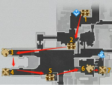 在初始探索过程中需注意:第三个宝箱需完成罗盘机关解谜,第四与第七宝箱所在区域有精英怪物驻守,建议提前调整队伍配置。第六个宝箱则需破解三阶魔方机关后方可开启。