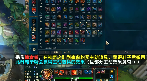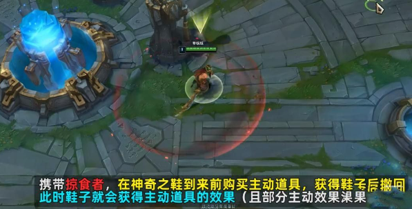 2.装备栏预置策略:在游戏时间12分钟前(即系统自动发放鞋子前),需将任意主动型道具放置于装备栏第二格位。可选用道具包含但不限于消耗品类(复用型药水/饼干配送)、装备类(渴血战斧/救赎)等具备主动技能效果的物品。