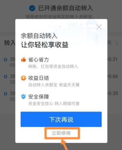 服务停用后将不再自动转入新资金,但已存入余额宝的资金仍可正常使用,建议用户在调整设置前做好资金规划。若需重新启用该功能,可按照相同路径进入设置界面进行操作。