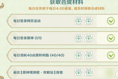 每日登录游戏可领取基础素材包,通过消耗原粹树脂能提升稀有材料掉落概率。建议优先完成日常委托与周常任务,树脂消耗推荐分配在地脉之花与秘境挑战中,可稳定获取水晶矿、发光髓等关键素材。