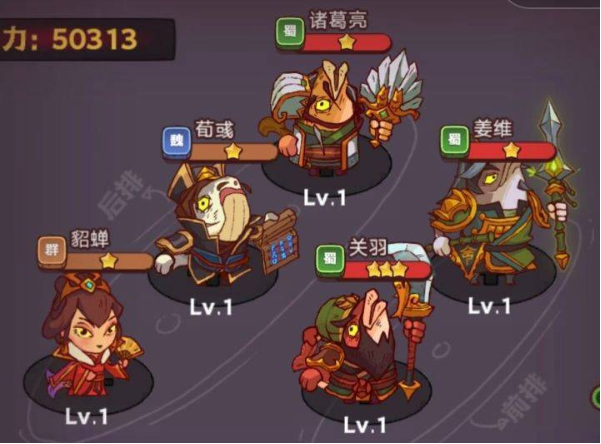 阵型布置:采用双前排承伤结构,关羽与姜维组成突击先锋。诸葛亮居中调度控制链,貂蝉与荀彧分居两翼形成三角支援体系。